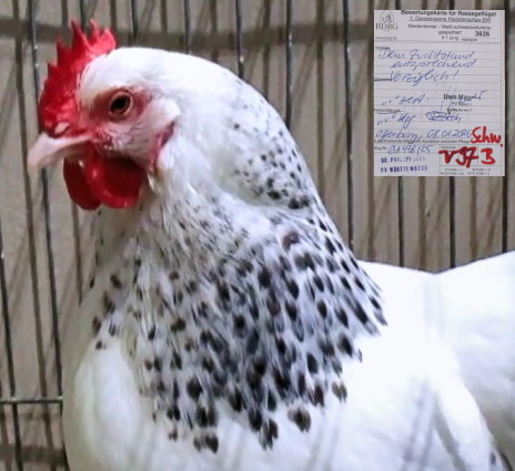 Niederrheiner weiß-schwarzcol.-gesperbert, kurze Version,