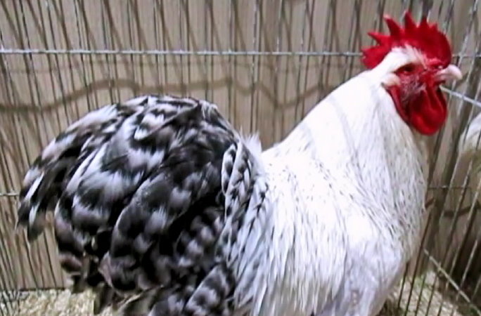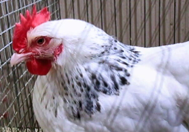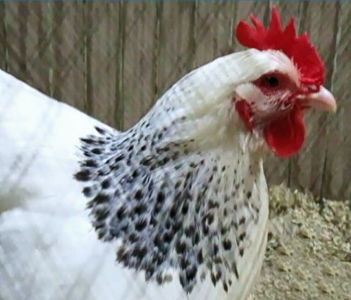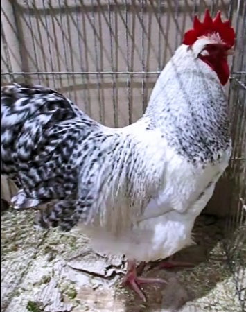 Niederrheiner (Poules du Bas-Rhin) blanc herminé coucou ,